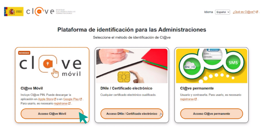 Ahora debes identificarte usando tu certificado electrónico (certificado digital) vigente para acceder de forma segura.